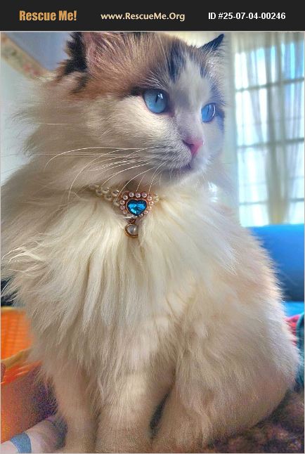 Mu̱eca is a 5-year-old sassy Ragdoll who identifies as a princess. Looking for her human prince charming. (She is very fond of males) She loves to be out and about whether it be running errands, nature walks or traveling. She is super well mannered and trained to pee on a pad when she's out. Being the diva that she is, she does not like sharing her spotlight with hyper kids or hyper pets in the home. She also Cannot be left home alone for more than a few hrs pr day as she will get depressed and her health will decline. Contact me for more info. Ruby 213-909-7566