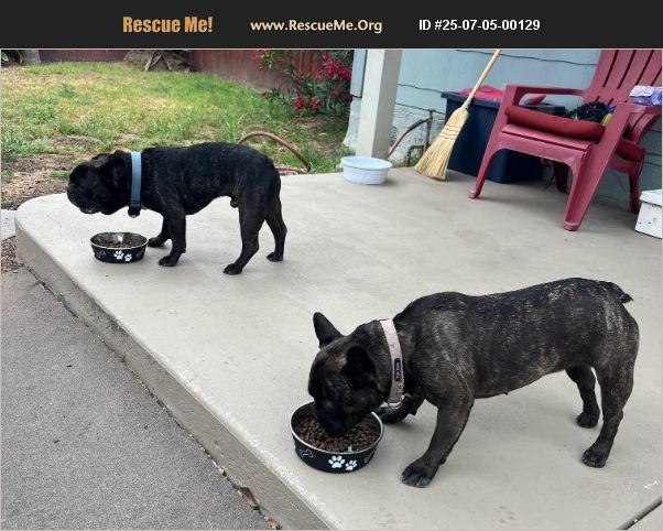 HI - WE'RE JACK & ROSE, a very bonded pair of French Bulldogs. We're 7 years young and were surrendered to the rescue because our owner had to go to an eldercare facility. We're a dream pair - we love people, love other dogs, and most importantly we love each other. We also do great with cats! We like to go on outings and are good with people out and about. We also love to bask in the sun, take naps on the couch and snuggle. I (Jack) weighs about 30 lbs and Rose weighs 25 lbs. Can you adopt us? We are such a joy to have around! We are still in Southern California, but can be transported to Northern California.