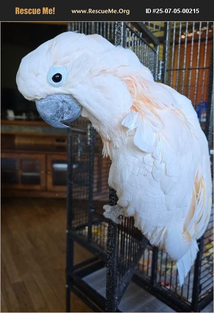 I do private rescue and recently took in Sam, or Sammy. Previous owner could provide no information as to age or even how long she had him. He has been with me for a few weeks. He is quiet for the most part, but does scream a little. He knows how to step up and loves to sit on your lap. A home with no young children would be preferred. He has a large cage to go with him. Please call or text if you are interested!