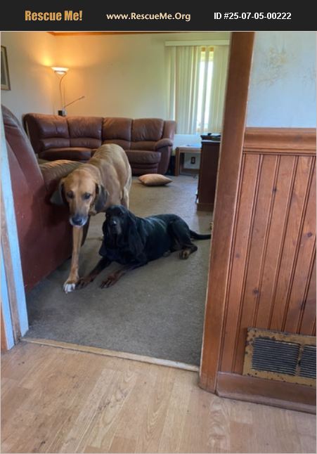 Andie is one of a bonded pair of bloodhounds who have lived together and been well cared for most of their lives. Both of Andie's owners are in nursing homes and can no longer care for them. Andie barks and jumps on people when they come in, due to excitement, but settles quickly. She's very sweet. I don't know her compatibility with cats or other dogs, other than her partner Odie. I'm also unsure of her compatibility with kids; I've never seen her around kids but she is good with adults. Andie and Odie have been living alone for 3 months with access to a large fenced yard and water and someone comes to feed the once a day, but they are getting lonely and need a good home.