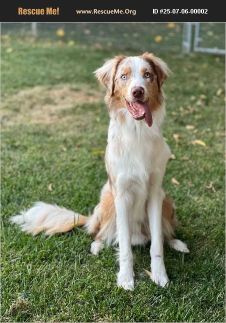 Looking for a sweet, smart, and loyal companion who'll be your shadow, cuddle buddy, and outdoor sidekick? Kenny might just be your perfect match. Kenny is a stunning red merle Aussie with long legs, a soft, flowing coat, and an expressive face you'll instantly fall in love with. He's 2 years old and full of love to give-but it takes him a little time to open up, especially around new people and men in particular. Once he trusts you, though, he's incredibly affectionate (some might say a little needy!) and loves nothing more than being close to his humans. He's dog-friendly and enjoys playing, but his energy can be a bit much for shy or reserved pups. He mostly ignores cats and does great with kids. On walks, he can get excited and bark at other dogs, but he responds well to redirection with commands like 'this way' and 'focus.' He's been working on leash skills and making great progress! Kenny is house-trained, sleeps through the night in his crate, and thrives on routine and gentle guidance. He loves exploring the yard, playing with toys and chew bones, going on walks, and just hanging out with his people. Kenny came into our rescue after being found on the street, having been hit by a car. He still has a limp in his front leg, but it hasn't slowed him down. He's steadily improving and would benefit from continued physical therapy to help him regain strength. If you're looking for a beautiful, sensitive, and intelligent dog who will love you deeply and grow alongside you, Kenny is ready to meet you. He's come a long way-and now he just needs a forever family to help him finish his journey home.