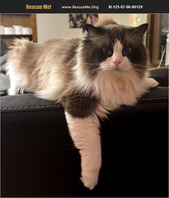 Rags is a sweet, loving, and cuddly kitty who unfortunately needs to be rehomed. Rags must be in a one-cat household only, as we discovered he does not do well with other cats. Rags loves to play and will spend all day running around and following you from room to room. He adapts to new environments fairly quickly and simply loves to be near his humans. We will not allow anyone to take him without having met us and Rags first, as rehoming has been a last resort for us. Once we have found the right home for Rags, we will provide his favorite litter box and his favorite toys.