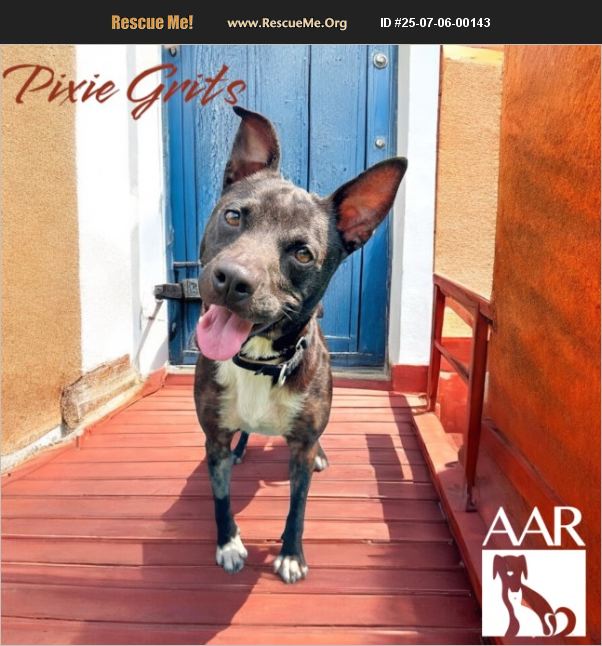 Pixie Grits is a walking ray of sunshine! She greets everyone she meets with a big smile and a full-body wiggle that's guaranteed to brighten your day. Her cheerful energy is contagious-you can't help but feel happier just being around her. Pixie is looking for a family that's ready to laugh, play, and explore. She's always up for a walk, a game of fetch, or just tagging along on your next adventure. Whether it's a road trip or a lazy Sunday in the backyard, Pixie Grits wants to be right by your side, soaking up the love and giving it right back. Ready for a little joy with a whole lot of wiggle? Pixie Grits is your girl! Est. DOB: 4/10/24 29 lbs. AAR does not transport for adoption.