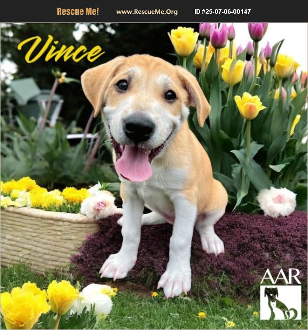Meet Vince, a sweet and gentle soul wrapped in a puppy package! While he loves to play with his siblings and enjoys his share of zoomies, Vince has a softer side that shines through. He's often the pup you'll find quietly observing before joining in, or curling up for a snuggle with a volunteer after playtime. His breed? Another adorable mystery-but one look at that face and you'll be smitten. With his big paws and calm curiosity, we think he'll grow into a large, lovable companion. Vince will do best in a home that offers both room to explore and a cozy place to rest his head. Like any pup, he'll need time, love, and gentle guidance to learn the ropes. If you're looking for a tenderhearted buddy with a playful spirit, Vince might just be your perfect match! DOB: 4/7/25 26 lbs. and growing! AAR does not transport for adoption.