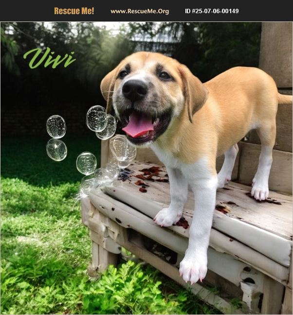 Meet Vivi, a darling little pup with a heart full of sweetness! Vivi may be the gentlest of her siblings, but don't let that fool you-she still loves a good game of chase and the occasional zoomie session. She's the kind of pup who melts into your arms for snuggles and gives the softest puppy kisses. Her breed? Still a mystery-but she's absolutely adorable from head to tail. With her soft eyes and growing paws, we think she'll grow into a big, beautiful girl. Vivi would love a home where she can run, play, and most importantly, feel safe and loved. Like any puppy, she'll need kindness, patience, and a little help learning her manners. If you're looking for a sweet, snuggly best friend to grow up with, Vivi is ready to steal your heart! DOB: 4/7/25 18 lbs and growing! AAR does not transport for adoption.