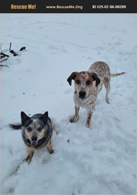 Sophie is an 8 year old blue heeler. Her owner recently passed away and she is in need of a home She is a typical heeler and wants to tell everyone what to do. She has arthritis in her hips and is happy to just chill all day. She is house trained. Sophie is the smaller dog in the photo. The other dog has found his new home.