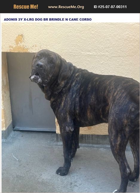 Cane Corso, A2207014, Adonis, at West Valley Shelter, Urgent Listed!!! Animals in our care are struggling and are being placed on Urgent Alert because they need more out-of-kennel enrichment and socialization. Adonis is approximately 3 years old and neutered. His owner decided that he doesn't have time for him anymore. He did bite someone a year ago per owner. We were unable to do a Medical exam due to his behavior. He's going to require a certain someone who knows this breed's traits and is willing to put a lot of time in him. Oliver Gillon Life Saving Liaison Foster Liaison Cell: 213-824-3636 Text Me / No Voicemails Animal Care Technician Los Angeles Animal Services West Valley Animal Shelter 20655 Plummer St. Chatsworth, Ca. 91311 E: [email protected]