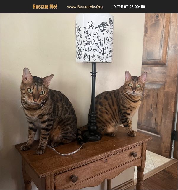 Santa Barbara, CA Leo & Sasha - Six year old bonded Bengal Siblings Leo & Sasha are the life of the party! These two feline adventurers are bursting with energy and love to play, explore, and interact with everyone they meet. Their boundless curiosity and affectionate nature make them a joy to watch and interact with. I'm confident they will quickly become cherished members of any family. In summary their personalities are: * Active and Playful * They need plenty of playtime and toys to keep them entertained. * They love to chase, pounce, and explore, so be prepared for lots of fun and games. *They are definitely social butterflies * They thrive on interaction, love being around people and grew up around children. *These two also love water and enjoy having a water fountain. If you are looking for a bonded brother/sister Bengal pair these two siblings are a fantastic choice for an active and social family looking for fun-loving, intelligent, and affectionate companions. Their medical is current and both are microchipped. If interested in adopting or have additional questions please contact: