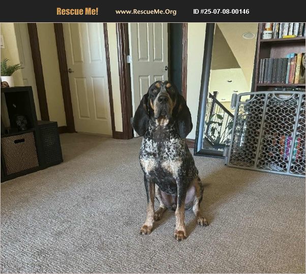 Due to a domestic violence situation, we are having to move into housing that will not allow me to keep such a handsome boy of Murphy's stature. He is a big boy! He has come A long way since we rescued him three years ago. He enjoys playing with other dogs, but is a typical hound he likes to Bellow. A soft muzzle can keep him calm in the house and keep him out of the trash, but other than that, he is a hound through and through.