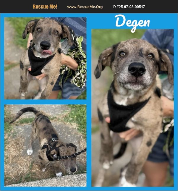 Meet Degen. He's currently in rescue. He was born around 4/3/25 and is a Catahoula Leopard/ Great Pyrenees/ Doberman mix from what we've been told by previous owner. He's current on vaccines, dewormed, and will be microchipped prior to adoption. He will come with a neuter contract to be fixed at 6 months of age, this fee is covered with the adoption fee. He's dog and cat friendly. He's kid friendly as well. He's working on potty training, basic commands, and crate training. He doesn't like to be alone and wants to be next to people or in their lap. Before applying, please take into consideration that puppies require training for basic commands, potty training, crate training, jumping, and puppies will chew on things and require redirection and patience. This can take months before they adjust in their new home and are completely trained. Do not adopt a puppy if you are not prepared for raising a puppy because this makes it much more difficult on them to be adopted and returned due to no fault of their own. Located in Charleston TN.