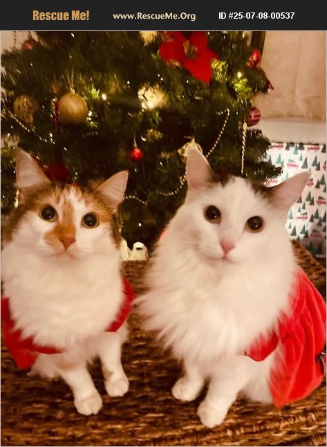 Bonded sisters Ivy & Chloe need a loving indoor-only home. Spayed, vaccinated, microchipped,3 y/o. Sweet but shy - need a calm, patient adopter. Must stay together. Located in San Antonio. Chloe is a domestic long hair Calico, and Ivy is a domestic long hair Turkish Van.
