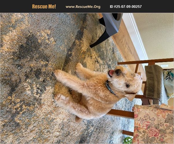 Lively, smart, intelligent well-bred Lakeland Terrier male, 21# enjoys run of our home & loves daily outings w/ active couple parks, coffee shops, Home Depot, pet stores. Reacts to broad range of commands & words. Comes w/ beds, clothes, blankets, toys, bowls.