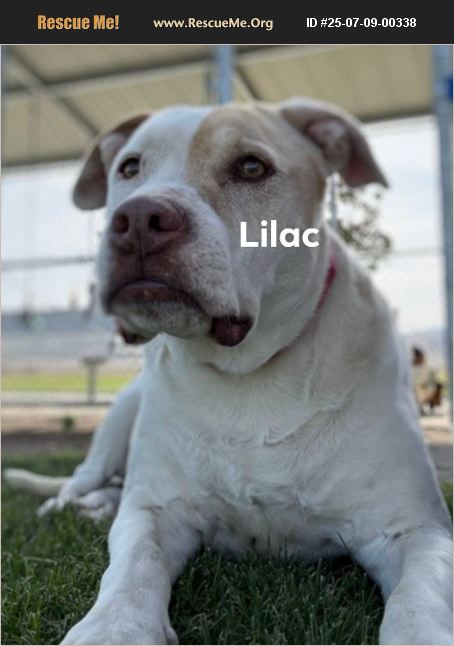Lilac is a smooth old gal. She loves walks and playing with her kennel friends. She loves one on one time, treats and playing tug of war (which she will win). She rides wonderfully in the car and is kennel trained.