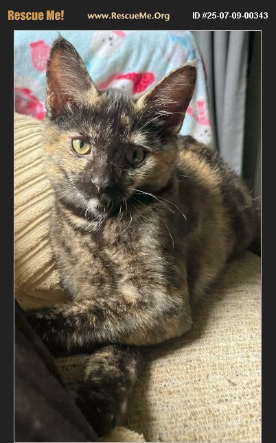 Say howdy to Trixie of our Western-themed litter, a striking four-month-old tortie with a whole lot of sparkle and sass! With her mesmerizing eyes and bold personality, this little cowgirl is sure to lasso your heart in no time. She came to our rescue with her gorgeous orange mama, Savannah, and her littermates: Dixie, Dakota, Tex, Ranger, and Sadie. Now that she has been weaned, Trixie is ready for her next rodeo! Trixie is full of playful energy - always ready to pounce, chase, and explore. But when the action winds down, she's quick to find a cozy lap to curl up in for some serious snuggle time. She's affectionate, confident, and loves being part of the action, whether it's playtime with her littermates or lounging with her people. She's currently in a foster home with other cats and dogs of all sizes and does great with everyone - truly a social butterfly! She has even done well meeting kids of all ages at our events. Because she thrives on feline friendship, Trixie must be adopted with one of her littermates or into a home with another cat. If you're looking for a kitten with a perfect mix of tortie-tude and tenderness, Trixie is ready to ride off into the sunset with you! Her adoption fee is $250 and Trixie is vaccinated, FIV/FELV negative, microchipped, and will be spayed next month. If you're interested in this cutie, please fill out an application at https://form.jotform.com/201805462692153. For questions, email [email protected].