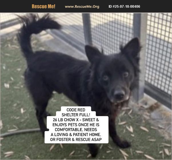 Courtesy Posting: Los Angeles, CA- LA City - South Los Angeles Shelter- ID # A2205090 'AUGUST' - ADORABLE, 26 LB SWEET CHOW X IN NEED OF PLACEMENT ASAP CODE RED (MAY BE EUTHANIZED SOON AND ON URGENT LIST since 7/3)- AT LA CITY SHELTER WHICH IS MORE THAN FULL -SWEET AND ENJOYS PETS ONCE HE IS COMFORTABLE, NEEDS A LOVING AND PATIENT HOME, OR FOSTER AND RESCUE ASAP Help! The LA city shelter is full and is asking for help for dear little August. Please help us find a good home, or foster and rescue, for this very adorable boy who was found as a stray on 6/23. The South LA shelter fondly named him, and estimates he is 6 years old and he weighs only 25.9 lbs so he is perfect size for many. Although August came in rather shy and shaking (who knows what he had been through being dumped on the streets), he can be seen in video being very loving, and clearly warms up once he feels comfortable, as is typical of the chow breed. The video can be viewed here: https://youtube.com/shorts/2JN4vPvheMo?si=zYFdPqrGJMtVA8sQ The shelter notes August can be selected with some dogs and wants some space. A slow intro with other dogs is therefore recommended, calmer dogs would likely be recommended with him. If you are interested to adopt August, and can give him a forever and loving home he so deserves, or are local and can foster, please contact the shelter directly using his link: https://24Petconnect.com/DetailsMain/LACT3/A2205090 and or by calling the LA City shelter at (888) 452-7381 and ask for his ID. The rescue coordinator, Catherine, may also be reached at [email protected]. If you can foster, please ALSO contact [email protected] or Southern California Chow Chow Rescue Network who is trying to assist the shelter with his placement, given rescue groups also need a foster to usually save a dog. He could also uses pledges towards medical for a rescue to help. We will also post additional pictures, videos and updates on facebook also at: https://www.facebook.com/debbie.alder.14/posts/pfbid0T7uHCMsgU5mda2hcyAZ5r2B6iLbbdJu3Mzn8FdLvYWMF5RLVnoJMirK1bFQdv8ipl NOTE: to view contents of links you will need to copy and paste each one separately into your browser.