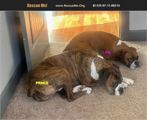 ***NEED REHOMING*** Together or Separately is OK Currently in Boise, ID Meet adorable boxers PRINCE and LEIA. They are friendly, fun, and obedient dogs that do amazing with other dogs and even children (sorry, no cats in their future). They are house-trained and love to be inside. They know when it's play time and when to chill when their owner rests. Their owner is moving out-of-state and has not yet found a solution for them. PRINCE is a sweet 7-year-old boy. He loves to cuddle and loves to take walks. Mention the word 'walk' and he's like a little pup again. He loves to love. LEIA is an energetic 4-year-old gal who keeps PRINCE young. She loves to be outside and play tag. She also loves toys. She can hold up to 3 balls in her mouth. PRINCE & LEIA love each other, but could live separately. PRINCE has been neutered; LEIA has not been spayed. Please contact volunteer matchmaker Kimmie at 208-484-0009 who can connect you with PRINCE & LEIA's owner.