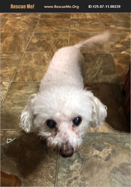 Breeding retired Bichon guess age to be 14. He is spayed, tattooed and up to date on shots and stands well for grooming. He likes kids, ignores cats and dogs. He has anxiety and doesn't like to be alone, will retaliate by peeing. He rings bells when he has to go outside, but wants in immediately after going to bathroom. Has a little stiffness in one back leg.