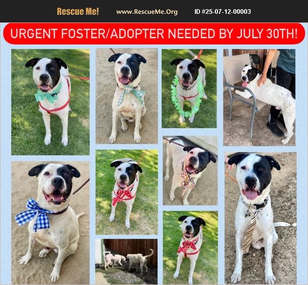 VIDEO INCLUDED: BUSTER NEEDS A HERO! Foster or Adopter Needed. The absolute deadline date is July 30th. Buster is running out of time. He's been in boarding for a very long time. He needs to leave or they will take him to the shelter. This sweet, goofy, heart-of-gold boy is desperate for a safe place to land and we are desperate to find it for him. Buster is about 5 years old, neutered, vaccinated, and ready to give someone his whole heart. He's AMAZING with people truly, he lights up around humans, even kids. His big, infectious smile and silly, loving personality bring joy to everyone who meets him. Whether he's playing with toys, asking for belly rubs, or just snuggling on the couch watching Netflix, Buster makes everything feel a little lighter, a little brighter. He's good with dogs his size, but has not been tested with small dogs or cats yet. He needs someone patient, kind, and willing to help him continue to thrive. The sad truth? Without a foster or adopter, Buster has nowhere to go. We are racing against time. Please open your heart, your home, your arms. Be the one who changes everything for him. He doesn't need much- just a soft place to land, and someone to love him back. Foster-to-adopt is an option. We'll guide you every step of the way. Your kindness could save his life. Contact Jennifer ASAP at (714) 366-8170. Come meet Buster. Please don't let this beautiful boy be forgotten. Please share. It will take a village to save his life.