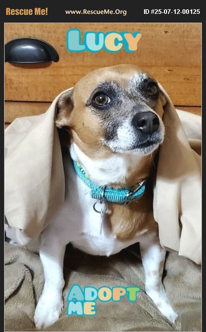 Lucy is the one you have been looking for! She is a Jack Russel/Rat Terrier mix about 4 years old and weighs 16.6 Lbs. Lucy is potty trained and will bark when she needs to go out. Lucy is playful, loving, and charming. She will be the talk of the town, as she is eager to meet everyone. Just look into those eyes and tell me you don't agree. She is always so sweet and wants to please. Lucy loves the leash, car and to just go everywhere you do. What are you waiting for? You have found the perfect princess right here. Lucy loves sleeping next to you on a pillow. Hope you love kisses because she does! Lucy does not care for cats. Lucy will come with vaccinations, Heartworm negative, wormed, on flea and tick control, spayed and micro-chipped. $235 rescue adoption fee applies. If you would like an adoption application and to set up a meet and greet, E-Mail or call or text Lori at: 760-680-3713 Located in Grove, OK. More pictures and video available upon request.