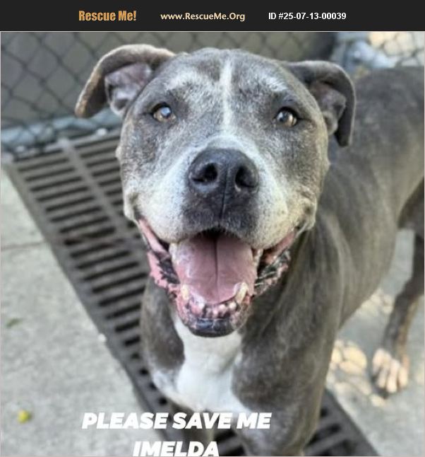 IMELDA is a SENIOR lady that shouldn't be spending her golden years in a loud over-crowded shelter. She is 10 years old and deserves to spend the rest of her life in a home where she can relax and just be loved! She's an expert cuddler, a loving & beautiful lady who is looking for a soft place to land. IMELDA IS URGENT! She has been at CACC since May 7th and needs out NOW! We thought she had a foster, but that seems to have fallen through, so she is back on the HIGH ALERT list. Would YOU be willing to FOSTER or ADOPT Imelda? This sweet dog is spayed and ready to go home with you today. Her adoption fees are waived and you can meet her between 12-6pm at CACC. Imelda had a home. She knew love! Could YOU give her the 2nd chance and the warm bed that she deserves? DON'T DELAY....HER TIME IS RUNNING OUT!