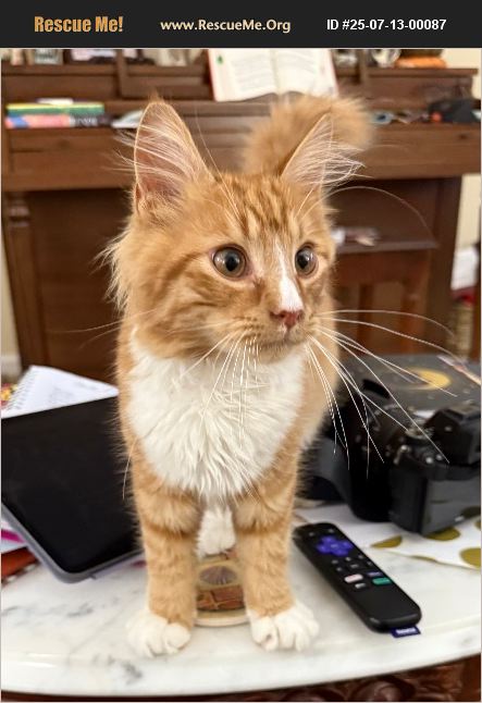 If you appreciate the fluffier things in life, then you should meet Sherbert! He is SUPER... sweet, loving, playful, gentle, soft, handsome. We call him a velcro-kitty as he loves to be where his people are. This biscuit maker with the big paws would love to show off his fancy, floofy tail and give you lots of head-butts. leg rubs and purrs! Estimated to be 5 mos. old, Sherbert is seeking a forever home where he will have another kitten companion to share the good times with. He is a charmer. who gets along with other cats and likely would do fine with a dog too. He arrived at a local shelter as a stray and we're amazed that no one came looking for him. Sherbert is up-to-date medically, microchipped. Meet him in Arlington, VA Local Adoption Only. Visit www.hafr.org to request an application