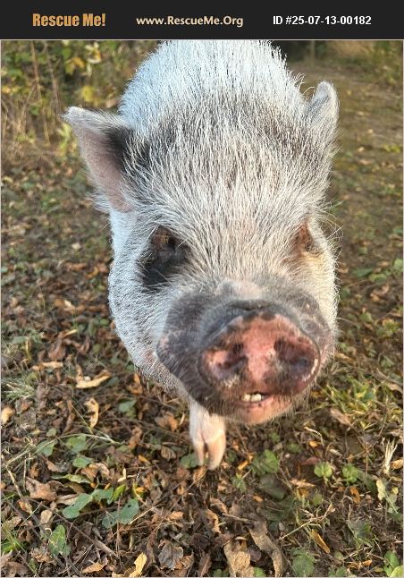 Oliver is a 5 1/2 year old mini pig weighing about 75 lbs (he is truly mini). He is potty trained and lives indoors, but loves to be outside. However, our yard is not fenced in. He has recently become obsessed with the chicken feed and gotten himself stuck in the coop multiple times so we cannot let him out to graze anymore. He would do best in a fenced yard with shelter so that he can enjoy grazing. He gets along with our cats and our chickens but is afraid of our dogs. He tries to assert dominance over smaller children but responds to 'move the pig' methods.
