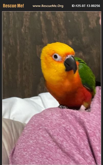 This animal is available to licensed rescue groups only. Please do not enquire unless with a licensed rescue group. Jenday Conure. Needs a home. So so sweet! His name is Sunny. He is a male and is nine years old. I am traveling way too much and it's just not fair to him ���� Please contact me if interested via text 901-201-1518. We are located in Collierville, Tn.