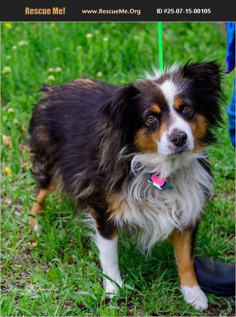 She is a tri-color. Very sweet, quiet girl. She was found dumped and brought to our Rescue. After doing some research we found the owner, who is in jail and can no longer care for her. She was released to us by the owner's sister. She is house and crate trained. Appears to be good with both dogs and cats here. Walks on leash well. She wasn't spayed or current on vaccinations, but is now.