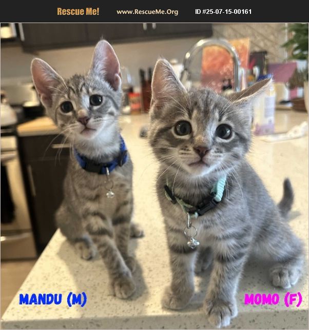 Momo and Mandu are the sweetest kitties I've ever fostered! They are a bonded pair that is playful, curious, and very loving. Mandu is a big cuddler and loves lots of pets while Momo always checks in on me and sits right next to me. They sleep together, wrestle, and just have a fun day everyday. They show no signs of aggression and are just sweet all the time. Mandu may play bite a little, but it doesn't hurt while Momo is more gentle. I can easily cut their nails, but they are more wiggly for baths. They are litter trained but because they are so young it's best to still supervise them for the first week or two to ensure they are familiar with your space and know where the litter box is. They deserve a loving home where they can stay together, please reach out if you are interested! Adoption fee is set at $200 total to help cover some of the vaccines I've gotten for them. I can provide all medical records for them. They are about 10 weeks old!