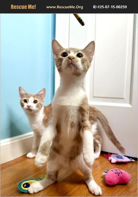 Meet Dorothy and Rose! Dorothy and Rose are adorable orange and white shorthair kittens! They have soft fluffy coats and are so cute! They are siblings, born on 3/21/25 making them around 4 months old. Dorothy and Rose were surrendered to the rescue by someone who had too many cats. Dorothy and Rose are adorable orange and white shorthair 4 month old sisters. They rely on one another for comfort and cuddles, and are looking for a home together. Like typical kittens, they are playful and active, but when it's nap time, they always sleep curled up with one another. Rose is slightly more outgoing, while Dorothy relies on her sister for confidence. A home with respectful, patient children would be best. Dorothy and Rose are in a wonderful foster home living their best lives! They love to play. Dorothy and Rose are both on the shy side and they depend on each other for comfort. They need to be adopted together so they can continue to build confidence! Dorothy and Rose are spayed, UTD on shots, combo tested negative and micro chipped. All cats will only be adopted out as an INDOOR cats where they will be safest! We don't want anything bad to happen to these precious babies! Dorothy and Rose are in New England and ready for adoption. The adoption donation is $350 which includes vetting and a microchip, plus covers the costs for transport north. If you are interested in opening your home to this wonderful kitty (or 2) please visit our website at www.angelsamongusanimalrescue.org and fill out an application to adopt.