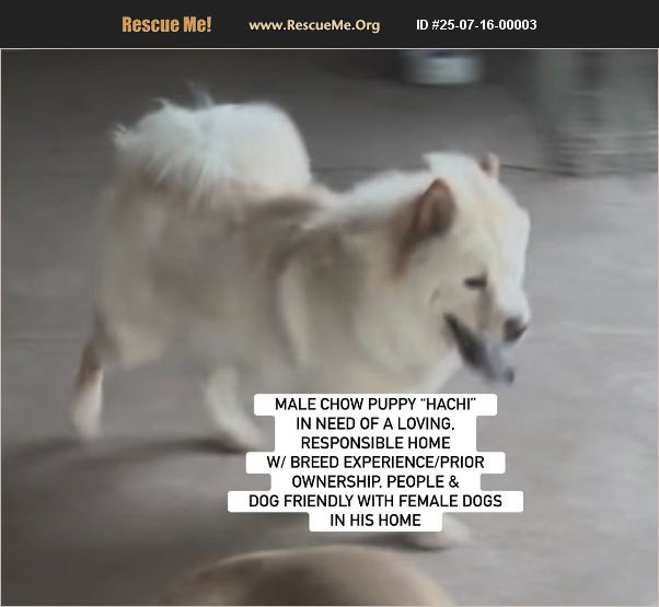 PHOENIX, AZ- MALE CHOW PUPPY 'HACHI' IN NEED OF A LOVING, RESPONSIBLE HOME W/ BREED EXPERIENCE/PRIOR OWNERSHIP, people and dog friendly with female dogs in his home Please help us find a loving, responsible chow savvy home for adorable Hachi, an approximate 9 month old puppy said to be 50 lbs now. He was purchased by a family who has multiple dogs including pomeranians, a mastiff and micro bully. However, Hachi is not getting along with the one male pom in the home. The family now realizes they cannot take care of Hachi and asked us for help. The owner reported no other behavior or medical issues other than not getting along with the male dog in the home, and he may bark at new people. Hachi has been around older children who are teenagers, and also around a cat who the owner said, 'he just runs up and like smells them'. They also said 'he's active outdoors but calm indoors'. If you are breed savvy and are interested in meeting and adopting Hachi in person, please contact [email protected] or Southern California Chow Chow Rescue Network who is assisting with his placement. Sorry, we do not do transport to private homes unless a rescue is involved due to risks of a home or dog not working out for any reason. If you do have another pet, a meet and greet is strongly recommended. And any new dog in a home, and particularly as chow grows up, their personality with others and other dogs may also change, Early and continued socialization with both is important. All adopters will be asked for a home check (which may be virtual), an application, a vet reference, proof of prior or current chows, and a signed adoption contract. Please note Hachi will need to be brought current on his vaccinations and neutered, costs to be borne by the adopter. Therefore, no adoption fee is required, but a neuter appointment at a vet or clinic will be. We will be posting more pictures and any videos of Hachi on facebook at: https://m.facebook.com/story.php?story_fbid=10167459114763125&id=783968124&mibextid=wwXIfr NOTE: to view contents of link you will need to copy and paste it into your browser.