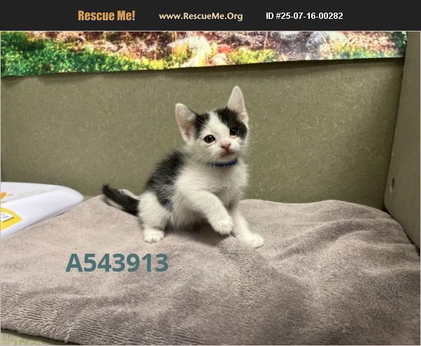 I am described as a male, white and black Domestic Shorthair. The shelter thinks I am about 9 weeks old. I weigh approximately 2.50 lbs. I have been at the shelter since Jul 15, 2025 and I am available for adoption now! Adoption hours: Tuesday - Friday 10:00am - 5:00 pm | Saturday 10:30am - 3:30 pm.