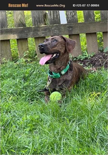 https://www.montgomerycountymd.gov/animalservices/adoption/howtoadopt.html 4years old. 34 pounds. Easy grooming, short coat, enjoys electric nail grinder. Very loyal and cuddly. Great with other dogs and older children 13-17 (has not been around younger children or cats so we don't know). Fully potty trained and knows basic training.
