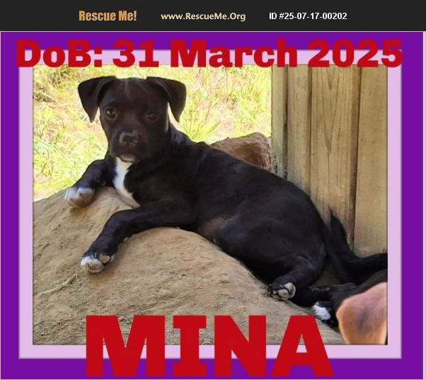 MINA will be arriving in Maine on Saturday 19 July 2025 We are happy to accept and process applications before she arrives. Meet MINA! Mina was saved from a high-kill shelter in Calfornia and arrived at Give a Dog a Home Rescue in Sebec, Maine on Saturday 19 July. We post our available dogs in states across the East Coast and Canada to reach as many people as possible in hopes of finding perfect homes and families. We do not transport dogs - families must come to the rescue in Sebec, Maine to meet and, hopefully, take home their new best friend. Shelter picture 1 month old. Health & Background ��%BD��%BD��%BD Spayed ��%BD��%BD��%BD Rabies and core vaccines up to date ��%BD��%BD��%BD On monthly flea/tick preventatives ��%BD��%BD��%BD Microchipped ��%BDsܥ��%BD%8F Weight: 11.4 pounds (mid July) Estimated DoB: 31 March 2025 What MINA Needs ��%BD'��%BD%8D��%BD��%BD'��%BD%8F An active family that can meet her physical and mental exercise needs Mental stimulation and enrichment - structure, toys, puzzles, and engaging activities ��%BD��%BD%8F High-quality food and treats to keep her healthy and energized Regular veterinary wellness checks for preventive care and long-term health ��%BD%9D%A4��%BD��%BD%8F Time to adjust and feel safe - patience to decompress and build trust Adoption Details Adoption Fee: $550 Location: Sebec, Maine Families must complete and submit an adoption questionnaire. Once approved, you'll be invited to schedule an appointment to meet MINA ��%BD%8F��%BD��%BD��%BD%8F Applications are generally processed within 24-48 hours Click here to complete the Adoption Questionnaire Want to See More of MINA? Check out our Facebook Page ALBUMS, where we share hundreds of photos of all the dogs waiting for their forever families!