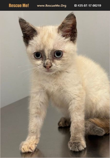 About eight weeks old, (on 7-17-25) Lola is a sweet and social tortoise point kitten. She's had her first vaccination, wormer, and flea preventative, and we will take care of her spay surgery as soon as she's big enough.