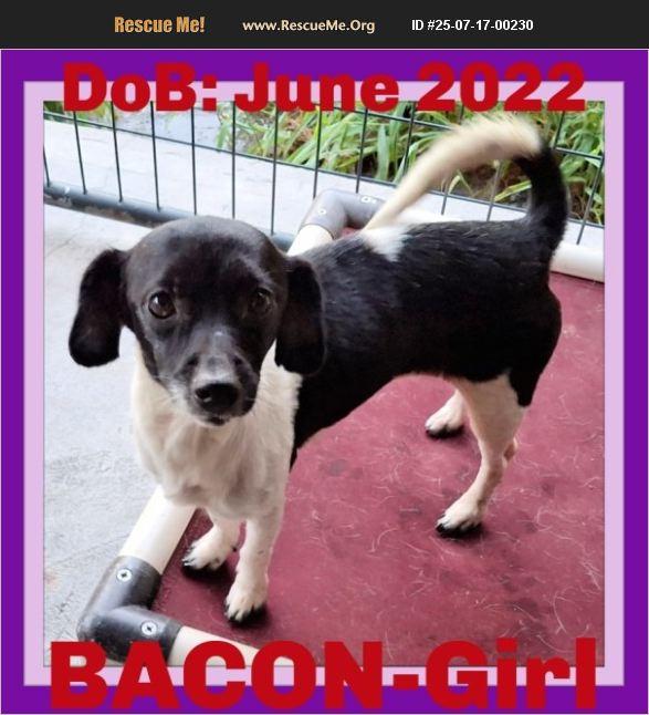BACON will be arriving in Maine on Saturday 19 July 2025 We are happy to accept and process applications before she arrives. Meet BACON! Bacon was saved from a high-kill shelter in Calfornia and arrived at Give a Dog a Home Rescue in Sebec, Maine on Saturday 19 July. We post our available dogs in states across the East Coast and Canada to reach as many people as possible in hopes of finding perfect homes and families. We do not transport dogs - families must come to the rescue in Sebec, Maine to meet and, hopefully, take home their new best friend. Health & Background ��� Spayed ��� Rabies and core vaccines up to date ��� On monthly flea/tick preventatives ��� Microchipped �sЕ�%8F Weight: 7.4 (mid July) Estimated DoB: 15 June 2022 What BACON Needs �'�%8D��'ە�%8F An active family that can meet her physical and mental exercise needs Mental stimulation and enrichment - structure, toys, puzzles, and engaging activities ��%8F High-quality food and treats to keep her healthy and energized Regular veterinary wellness checks for preventive care and long-term health �%9D%A4��%8F Time to adjust and feel safe - patience to decompress and build trust Adoption Details Adoption Fee: $550 Location: Sebec, Maine Families must complete and submit an adoption questionnaire. Once approved, you'll be invited to schedule an appointment to meet BACON. �%8F���%8F Applications are generally processed within 24-48 hours Click here to complete the Adoption Questionnaire Want to See More of BACON? Check out our Facebook Page ALBUMS, where we share hundreds of photos of all the dogs waiting for their forever families!