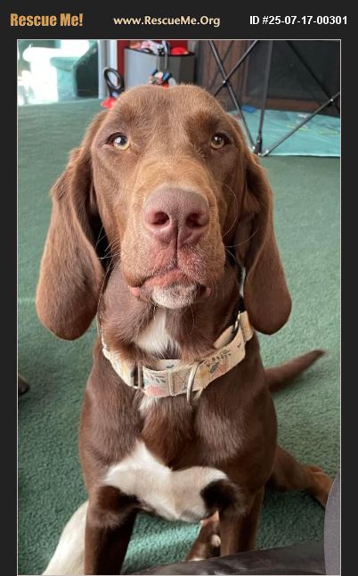She is a very sweet dog and loves to cuddle. She is just too hyper in a house with small children and toddlers. She has started jumping the fence and needs to do what she was bred to do. She is a Springer spaniel / bloodhound cross. She needs to hunt and run and I can't provide that for her.