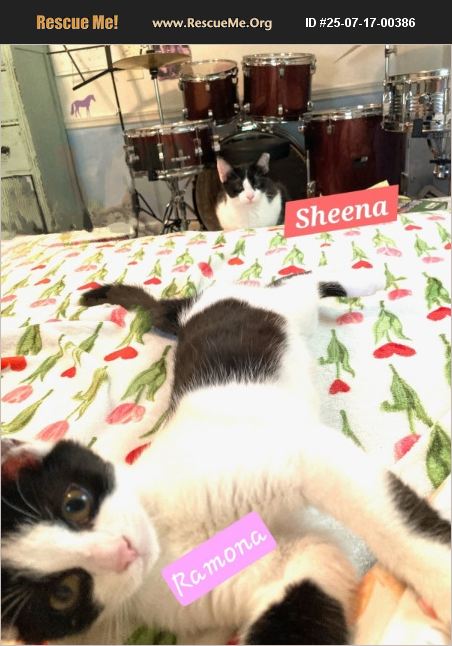 Bonded pair, Ramona and Sheena. Ramona is sweet and loving. Sheena needs her sister to come out of her shell. Both love our kitties and large dog. Currently fostering them after a neuter/spay cat rescue assisted us. We found a home for the brother Tommy but these two are looking for their family.