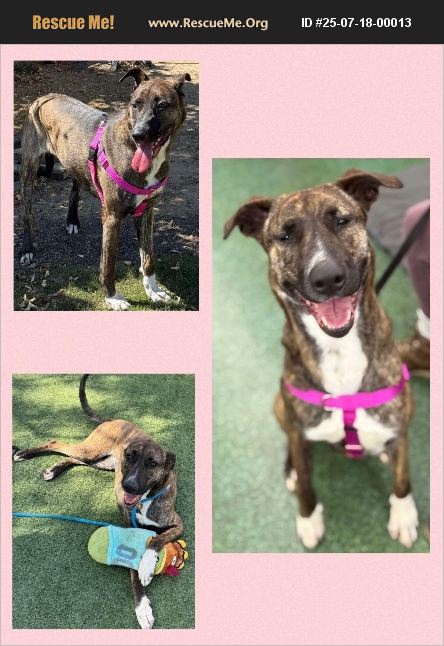 Shury is in foster care in Los Angeles, California. Transportation information is available. Shury is 2 years old. She has spent half her life in the shelter. She was adopted and got along fine with the two dogs in the home (a Weimaraner and a Mexican Hairless), but when the adult daughter moved in with her senior dog, Shury picked on the senior and was returned to the shelter. Shury would do best in a home with other calm dogs or as your one-and-only. She is an energetic girl who could use a large space to run around, or nearby hiking trails. She loves playing with toys and practicing commands. She'd do best with kids over 12.
