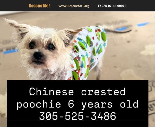 Meet Poochie - A Survivor Ready for Love!!! Poochie is a 6-year-old Chinese Crested/Maltese mix with a heart full of love and a story that will touch yours. This sweet 18 lb cuddlebug was found abandoned in a pile of garbage - but despite it all, hes gentle, affectionate, and just wants to feel safe and loved. He's calm, laid-back, and enjoys lounging by your side. Still working on training, but eager to learn with someone patient and kind. Located in West Kendall (Miami, FL 33187). Please don't think twice before calling 305-525-3486 if you're ready to give Poochie the second chance he deserves. Adoption fee: $350 She won't last - open your heart, and give him a forever home!