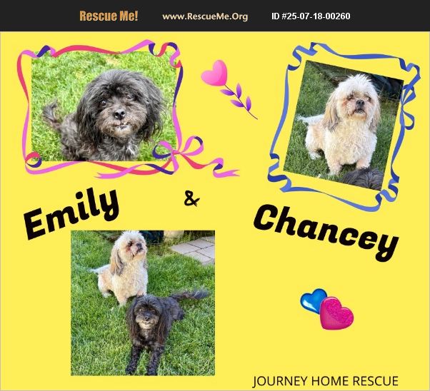 **Available** �٩��٩� ***Ready for Their Forever Home*** EMILY and CHANCEY are two Adorable Shih Tzu's looking for their Forever Family. This Sweet loving bonded pair are two peas in a pod. They both love to snuggle and hang out wherever you are. Chancey is 11yeaars old and weighs about 15lbs. Emily is a little petite 5lb 9-year-old. Both are very easy-going and have the sweetest disposition. Chancey loves to spend his time laying on his favorite blanket. Emily loves to be your little shadow and just enjoys being next to you. Housetrained and know how to use a doggie door! Chancey is neutered, Emily is spayed, both are up to date on vaccines and are microchipped. Located in southern Idaho, transport is provided to approved home within the Pacific northwest. Email [email protected] - for Chancey and Emily