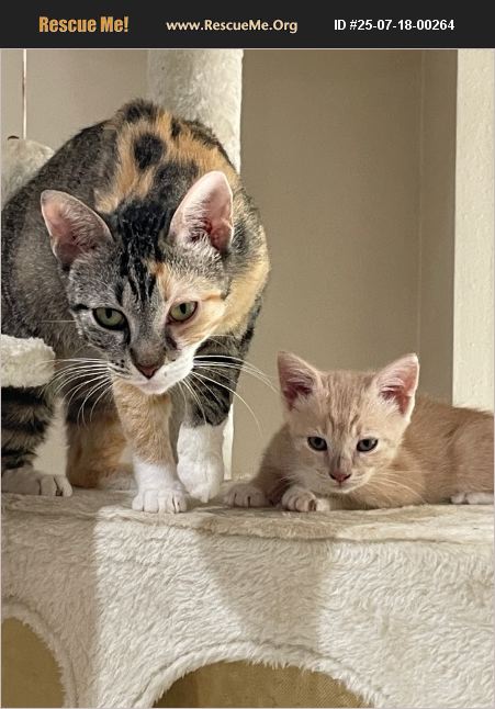 Sadly, when our volunteer went to pick up one of the litters of puppies we recently took, the people who had been evicted also left behind a mommy cat and seven kittens. Our volunteer could not ignore their situation and brought them with the puppies. Our incredible veterinarian was kind enough to help place all but one kitten. We still have mommy. We named mommy Angie. She is a 2 year, female, calico and she is wonderful. She is a smaller adult cat. We named her remaining kitten Daisy. We are looking for a foster and/or adopter for mommy and kitten. Angie the mommy was spayed today. Both are up to date on vaccines and vetted. Please, please help us. We are a dog rescue. �%9D%A4��%8F�%9D%A4��%8F�%9D%A4��%8F�%9D%A4��%8F�%9D%A4��%8F