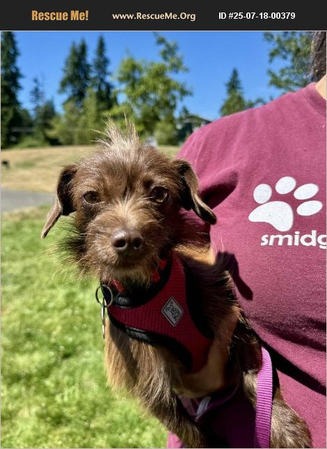 PLEASE READ THE ENTIRE BIO ON THIS DOG BEFORE REQUESTING AN APPLICATION. MANY OF OUR DOGS HAVE STRICT REQUIREMENTS FOR THEIR ADOPTION. 1. Older children only. 6-month-old female wire haired Dachshund mix, about 7 pounds. Myka is a sweet but shy girl. She loves other dogs but is slow to warm up to humans. She loves to play and to eat! She is comfortable in her crate but is still learning about the leash. She would love a fenced yard and another playful pooch in the home, with humans that will give her time to warm up and get comfortable. Cats are unknown and older children please. To request an adoption application, email [email protected] Adoption contract and fee applies. All adoptable dogs can be met at adoption events hosted every weekend. For a list of scheduled events go to: https://www.facebook.com/SmidgetRescue/events . Smidget Rescue is not a shelter, and dogs cannot be seen at the Rescue location. All dogs are fostered throughout the Puget Sound area and are brought to the events where they can be met by prospective adopters. Additional pictures of adoptable dogs can be seen at: https://www.facebook.com/SmidgetRescue/photos_stream?tab=photos_albums. All adoptable dogs are spayed or neutered at 6 months of age or older. Puppies are adopted with a refundable spay/neuter deposit (in addition to the adoption fee) and adopters are required to get their puppy to our vet for their pre-scheduled spay-neuter appointments. APPLICATIONS CAN BE OBTAINED BY EMAIL ONLY. Adoption process includes application, meet & greet, home visit and reference check. Email Jamie at [email protected] or click on the CONTACT link on this page. PLEASE DOUBLE CHECK YOUR EMAIL ADDRESS BEFORE SENDING. 8632781We get a fair number of incorrect emails and Jamie is not able to contact potential adopters. Notice: We do not ship dogs out of state. You must live within a three-hour radius of Seattle, WA, (such as Portland, Vancouver B.C., etc.), so we can arrange for a home visit. If your home seems like a great fit for the dog you would like to adopt, you must then drive to meet the dog at one of our weekend events or at the fosters home.