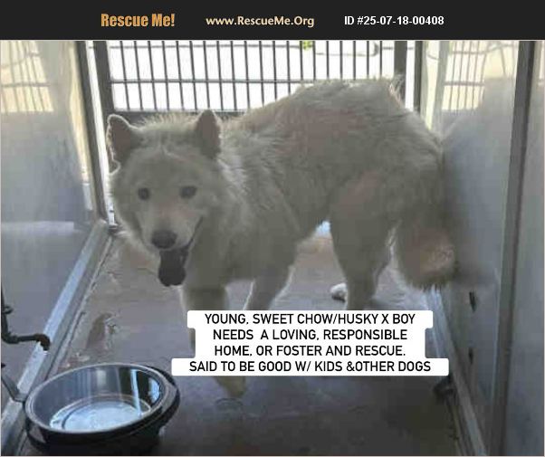 Courtesy Posting: SAN DIEGO (BONITA), CA- COUNTY OF SAN DIEGO ANIMAL SERVICES - ID #A1914176, YOUNG, SWEET CHOW/HUSKY X - NEEDS A LOVING, RESPONSIBLE HOME, OR FOSTER AND RESCUE- said to be good with kids and other dogs. Please help us find a loving, forever home (or foster and rescue) for this adorable young man named Oso. He was found as a stray in neglected condition and taken to the Bonita shelter. While his owner was later found, sadly, they opted to surrender him due to landlord reasons. However, they at least let the shelter know some nice things about him and said they 'had him for 2 years, he did well around children and other pets, calm when left alone, and enjoys toys, treats, and walks.' Oso seems to have lived as an outdoor dog and therefore may need to be potty trained. The shelter noticed he is generally easy to handle, but head whips when touching flanks/rear so he may have some sensitive areas. The poor young guy has noted 'Matted unkempt coat, mild dental tartar, moderate otitis AU and alopecia (shoulder, dorsum), all treatable and some already being addressed, so hopefully we can find a better home for him he so deserves. We were given nice video of Oso enjoying being pet and showing his gentle demeanor. Oso was just neutered, weighs 61 lbs and is ready to go home. For adoption inquiries, you may contact the shelter using his listing link: https://24Petconnect.com/DetailsMain/SNDG2/A1941646 or call (619) 767-2675 and ask for him by ID. If you have another pet, a meet and greet is always recommended. However, please ALSO contact [email protected] or Southern California Chow Chow Rescue Network asap who is trying to assist the shelter with her placement, particularly if you are interested in fostering or fostering to adopt- so we can try to pair you with a rescue to help. Videos, additional pictures and updates will be posted on Facebook post as we receive them at: https://www.facebook.com/debbie.alder.14/posts/pfbid02oNEyNn36By2YBze2txmStJpimuXnLit1wgZ1K5d2nDA4VChaMV7jkKyEoTjKicJzl