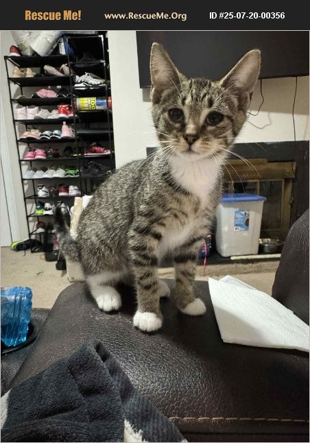 This adorable kitten is Tinsel. He is 3-months-old and has a shorthaired brown and white tabby coat. Tinsel is at a foster home, not at our shelter. He is very playful and sweet. He loves toys and running around with other kitties.��%BD%A0Tinsel is vaccinated for age, microchipped, neutered and healthy. His adoption fee is $225. If you would like to meet/adopt Tinsel, please complete our online application at https://daws.org/daws-forms. Email [email protected] with questions or for more assistance.
