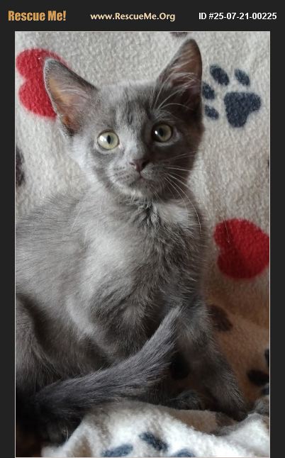 Meet Parker, a charming 10-week-old Russian Blue/Domestic Short Hair kitten with soft grey fur and a sweet white patch on his chest. Parker is the perfect mix of playful and cuddly - just as happy chasing toys as he is curling up in your lap for a nap. He's especially adorable when he's bouncing around the room, proudly playing 'soccer' with his jingle ball or trotting off with his prized catnip mouse, keeping it safely away from his brother in a game of feline keep-away. Despite his small size, Parker has a big personality. He's confident, curious, and never one to shy away from new people or experiences. He's already shown he gets along well with children and strangers, making him a great fit for a calm, loving home with gentle kids or anyone looking for a playful yet affectionate companion. If you're looking for a well-adjusted kitten with a big heart and even bigger energy, Parker might just be the perfect match! This kitten is in Tennessee. Adoption Donation $100 if picked up in TN. Visit http://aarf-tn.com/adopt/cat-adoption-application/ to apply. $175 plus transport fee (varies) for adoptions to the Northeast. Interested in adopting? Take the first step and complete an adoption application on our website: http://aarf-tn.com/adopt/adoption-apps/ If you have questions that are not covered in the profile, visit the Pet Inquiry Form: http://aarf-tn.com/contact/pet-inquiry-form/.