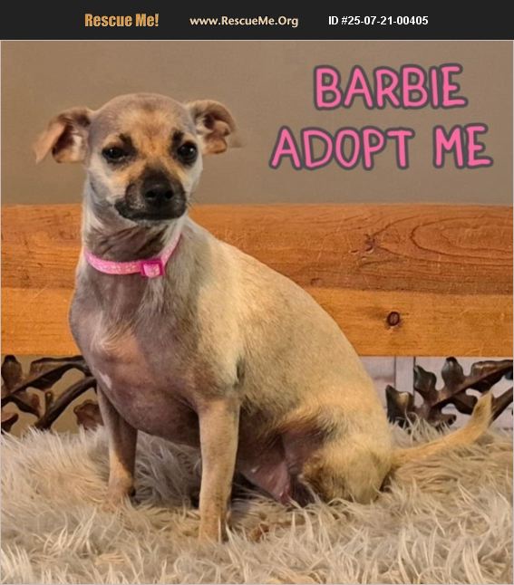 Barbie Doll is the one you have been looking for! She is mostly Chihuahua with a little Miniature Pinscher mixed in. Barbie is about 1 years old and weighs 11.6 Lbs. Barbie is playful, loving, and charming. She loves the leash, car and to just go everywhere you do. Barbie loves sleeping next to you in bed or while watching television. Hope you love kisses because she does! Barbie is not an unnecessary barker so would also do well in an apartment. She is potty trained and will use the doggy door. You have found the perfect princess right here. What are you waiting for? Barbie will come with vaccinations, wormed, on flea and tick control, spayed and micro-chipped. $235 rescue adoption fee applies. If you would like an adoption application and to set up a meet and greet, E-Mail or call or text Lori at: 760-680-3713 Located in Grove, OK. More pictures and video available upon request.