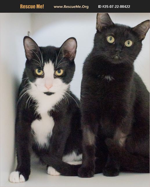 This bonded pair of gorgeous kitties is Cloak and Romper. Cloak is 18-months-old and Romper is 8-months-old. Cloak is Romper's mama and they love each other so much that they are looking for a forever home together. Both kitties are a little shy but once you take your time with them, they are very sweet and enjoy pets. And they love their wet food! Cloak and Romper are vaccinated, microchipped, spayed/neutered and healthy. The total adoption fee for the pair is $175. If you would like to meet/adopt Cloak and Romper, please complete our online application at https://daws.org/daws-forms or stop by at our shelter Wednesday-Sunday between 12 and 6 PM. The DAWS shelter address is 147 Grassy Plain St. Email [email protected] with questions or for more assistance.