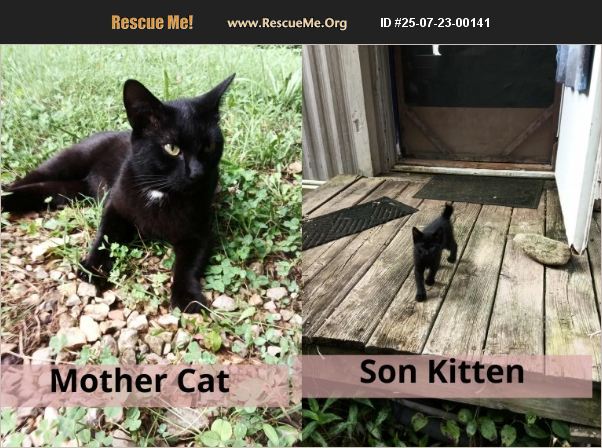 Mother cat & kitten were abandon June 30th Both are Black With a white spot on under neck and belly Kitten is Roughly 7 weeks old Confirm Male Has a Semi bob tail Mother cat appears to be 1-2 years of age Has Full bunny bob tail Mother cat Took 3 days to trust timidly human interaction and seems to want pets but is very unsure about people however she started looking for pets timidly but seems willing to accept some gentle touches towards tail and back of head. Kitten is playful and curious about everything But takes his cues from mom so If she says danger to hide he will. So winning over mother trust and kitten is open to being your friend too MUST GO to indoor HOME ONLY. Mom needs to be fixed ASAP and no longer a Momma cat. Kitten need to be fix at 5-7 months old (no fee website just say i have to put one)