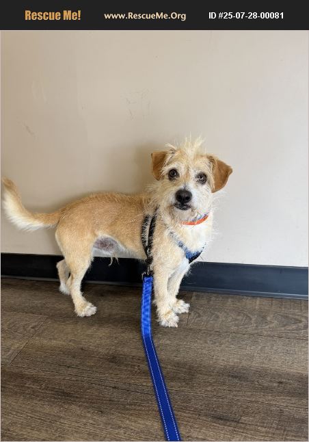 Welcome Pippin! A Terrier mix and about 5 years old and 14 pounds, Pippin is just the right size for about any household. He is friendly, good around other dogs and very loving. Pippin was found as a stray and taken to a city shelter where we rescued him. He rides great in the car and is not a barker. Pippin enjoys walks although some noises startle him. We cat tested him and he seems to be fine with them. We have not had Pippin around children. Pippin is not in a foster home so we cannot say for sure if he is fully house trained at this time so we expect some reinforcement will be required in a new home.